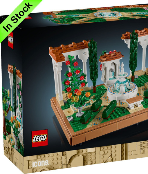 Immergiti in un progetto coinvolgente con il set decorativo per la casa e l’ufficio 10359 LEGO Icons Fountain Garden per adulti!