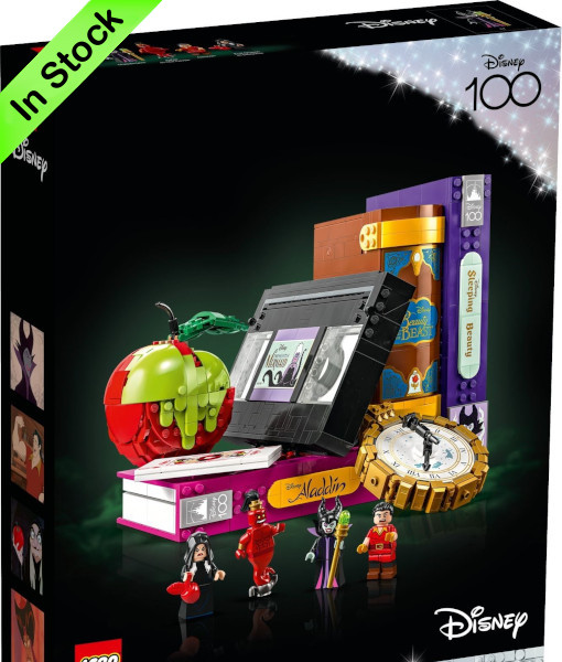 Questo dettagliato set da collezione presenta 2 custodie di video VHS in mattoncini di Aladdin e de La Bella Addormentata, una “cassetta” VHS de La Sirenetta, un libro che rappresenta La Bella e la Bestia, una carta da gioco della Regina di Cuori di Alice nel Paese delle Meraviglie, la mela “avvelenata” di Biancaneve e un orologio da taschino che rappresenta Capitan Uncino di Peter Pan.