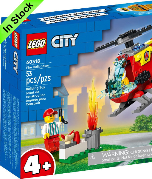 Avvicinati all’entusiasmante mondo di LEGO City con il playset 60318 Fire Helicopter, caratterizzato da un elicottero dotato di vano portaoggetti e rotori girevoli, oltre alle LEGO Minifigures del pompiere e del venditore di hotdog.