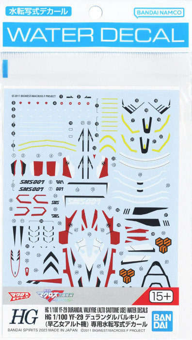 HG Macross Frontier – YF-29 Durandal Valkyrie (Alto Saotome Use) Water Decals