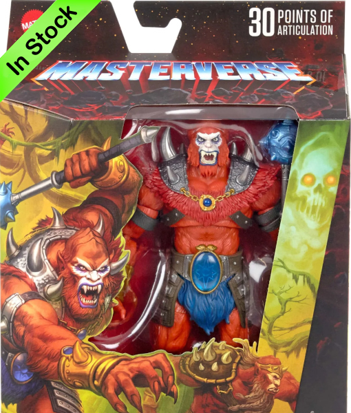 Beast Man measures approx. 18 cm and comes in a window box packaging. He has about 30 points of articulation so they’re highly poseable for imaginative and action-oriented fun, MOTU style.